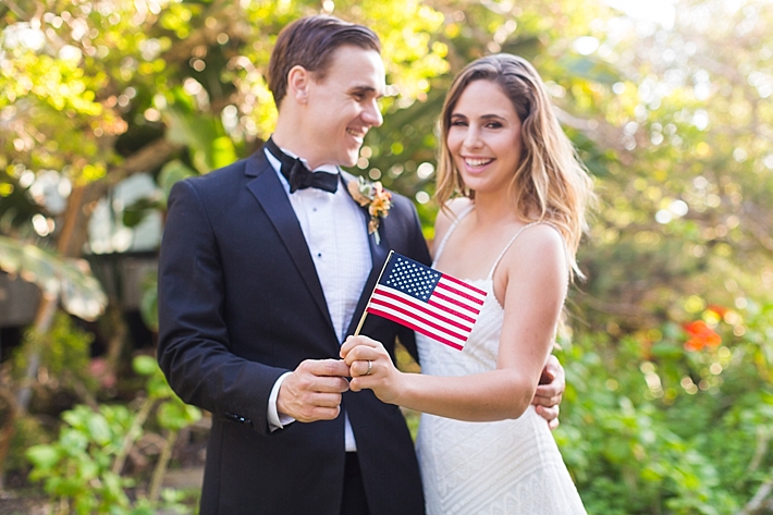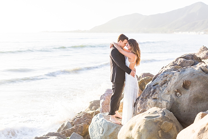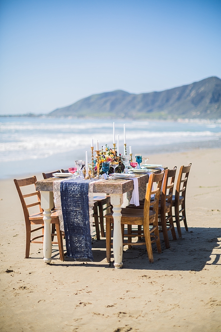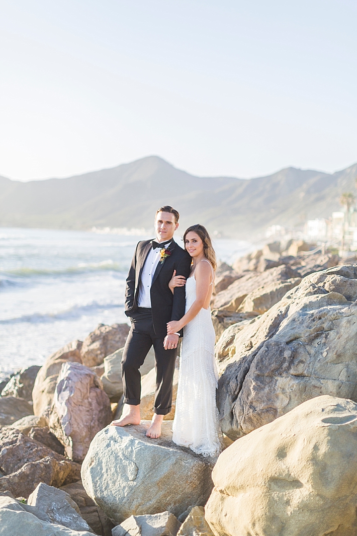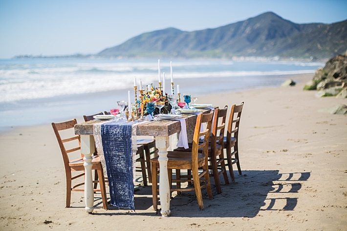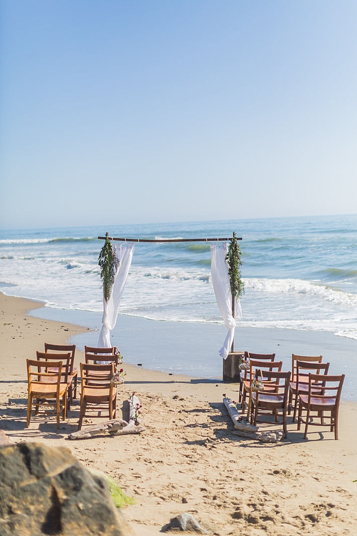 “Nestled between the Pacific Ocean and the Santa Ynez Mountain Range lays a stretch of beach as private and picturesque as the couple who chose this location for their Memorial Day elopement. Seeking a seashore venue, sans prying public eyes, the bride and groom landed upon a beachfront home located on a secluded stretch of beach in southern Santa Barbara. Upon securing their ideal venue, the couple enlisted a team to bring their vision to life; a marriage of beach romance, vintage aesthetic, and a salute to the red, white, and blue.