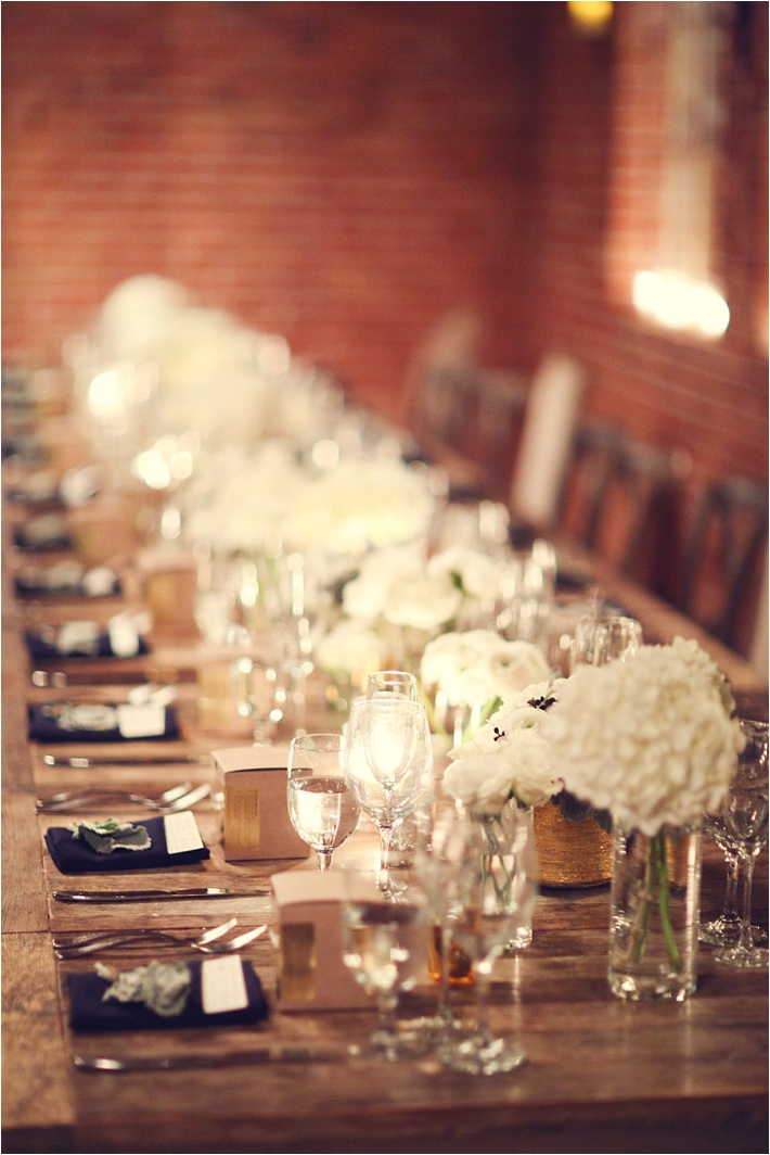 Our amazing wedding coordinator, designer and florist made sure all of our ideas came to life like magic. We will never forget sneaking to the back room to see the dinner all set up. It was amazing. The white flowers on the table surrounded by candles made the room glow. We both ran to get our parents so they could see the room untouched. My mom, who until then hadn’t quite understood why we didn’t want ice sculptures and a 7-tier cake, finally understood what we meant by an intimate and warm setting. We all had the same feeling on our wedding day that Scott and I had had the first day we walked in to Carondelet — simple joy and wonder.