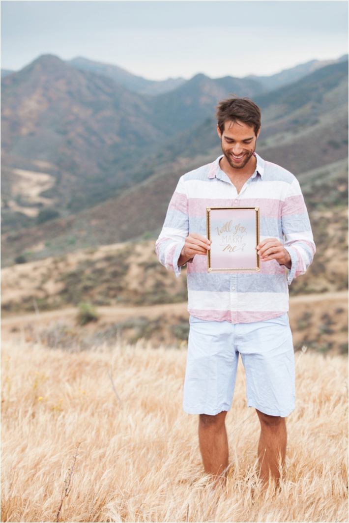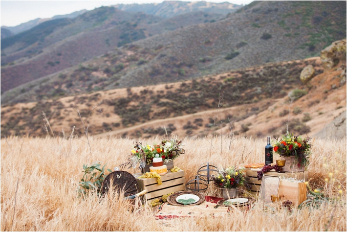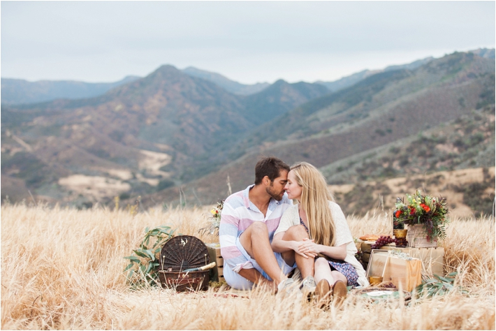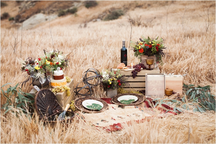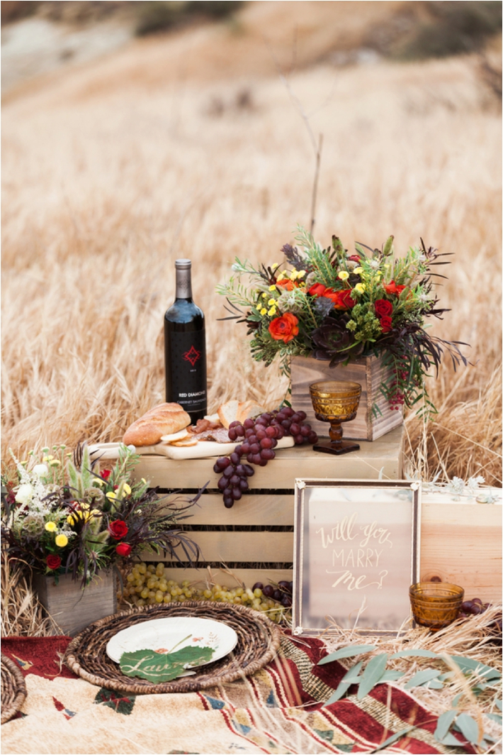 “This project came together when I booked a wedding in the LA area. Knowing that I was going to be on the West Coast, I got in touch with my friend and talented wedding planner, Kelsey. I really wanted to take advantage of Southern California’s amazing landscape. I was looking for a location that was a scene stealer, epic if you will. Well, I couldn’t have dreamt it up any better. I swear we were lost somewhere in Middle-Earth and that over or under any hill we might find a hobbit hole. It was just beautiful country. Having this location in mind, Kelsey and I wanted gorgeous, well thought out, yet simple details. Our picnic environment is just that. It works seamlessly with it’s California wild flowers, wine crates, grapes and “cheese” cake. The act of proposing one’s life to another has such weight and depth. I really wanted to compliment that with a visual juxtaposition of the actual proposal to an incredibly expansive landscape. Life, in that moment, is boundless.” -TBM Photography