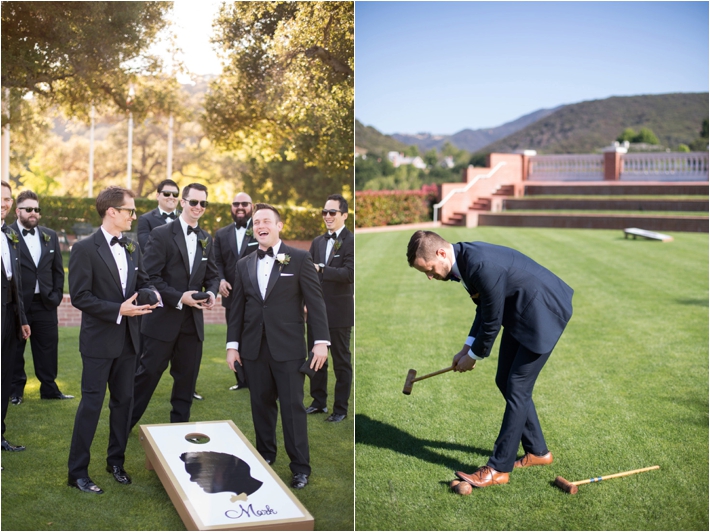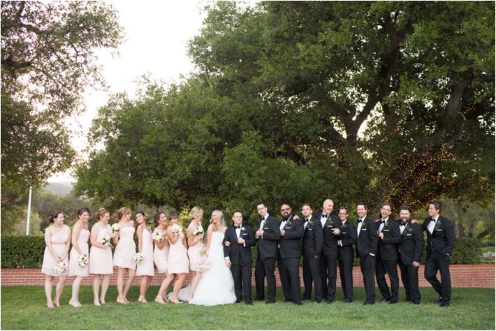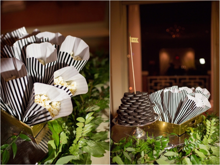 Suzanne and Mark met because of Suzanne’s sister, Kristin. Kristin and Mark went to college together and when Suzanne relocated to the LA area, she got in touch with Mark as a contact in the area. Several years later, Mark proposed during a surprise trip to New York, where he made sure Suzanne’s friends and Kristin were there after to celebrate! Suzanne and Mark married at the Sherwood Country Club in elegant fashion. The blush tones accented the formal affair and the personal touches of fun facts about their relationship on the napkins, table names with their favorite places and customized bean bag toss to play during cocktail hour made the wedding all about them! Mark is the former drummer for Tyrone Wells, so Tyrone performed while Suzanne and her father danced! Another favorite personalized detail was the cake server from Suzanne’s parents wedding. Her sister also used it and it’s engraved with all of their wedding date s, with a space for Mark and Suzanne’s wedding date as well! Suzanne and Mark also provided their guests with late night snacks of popcorn and Oreos to keep the party going until midnight!