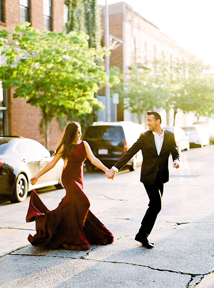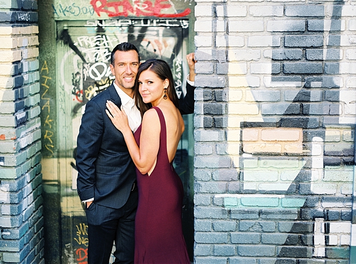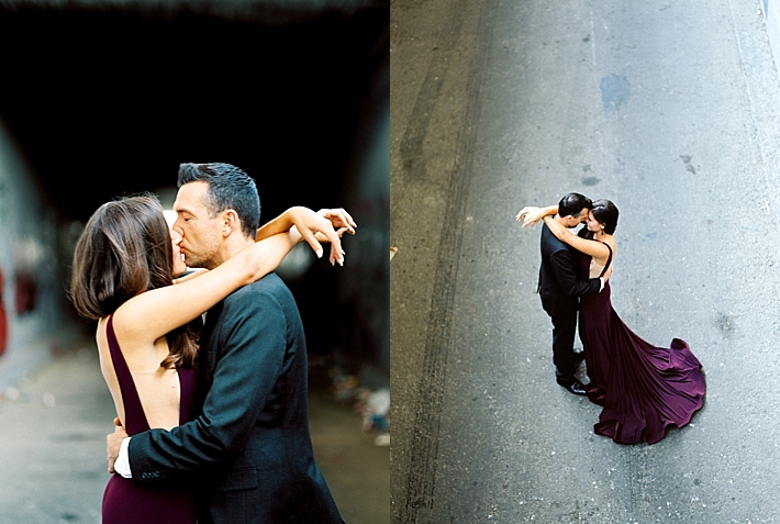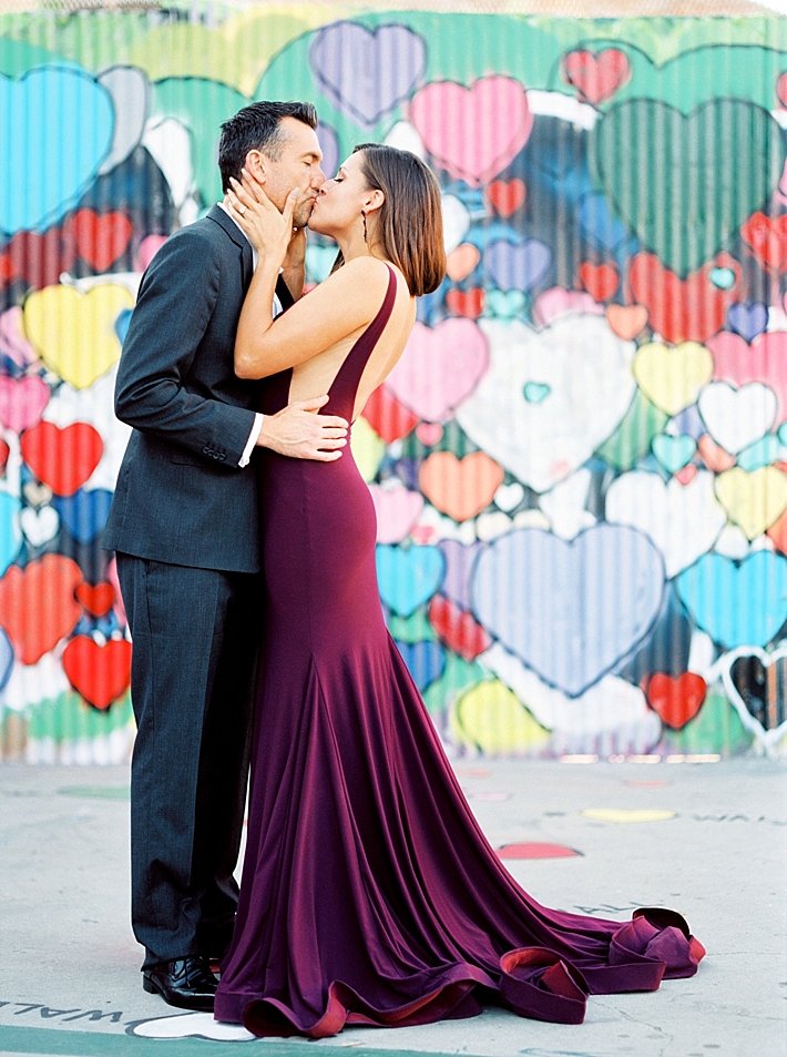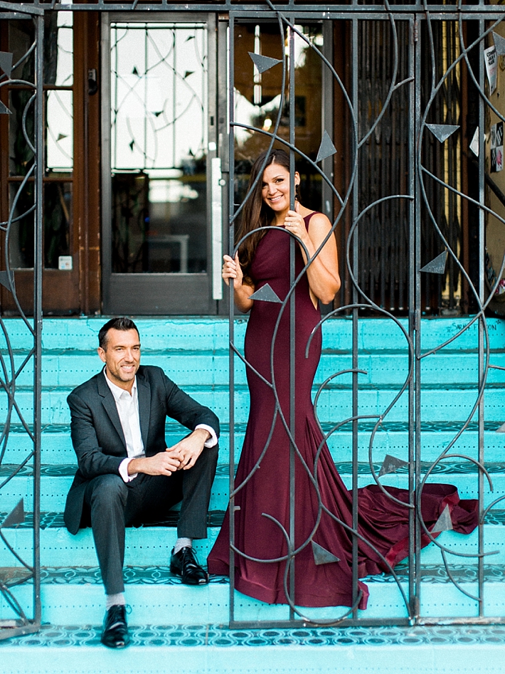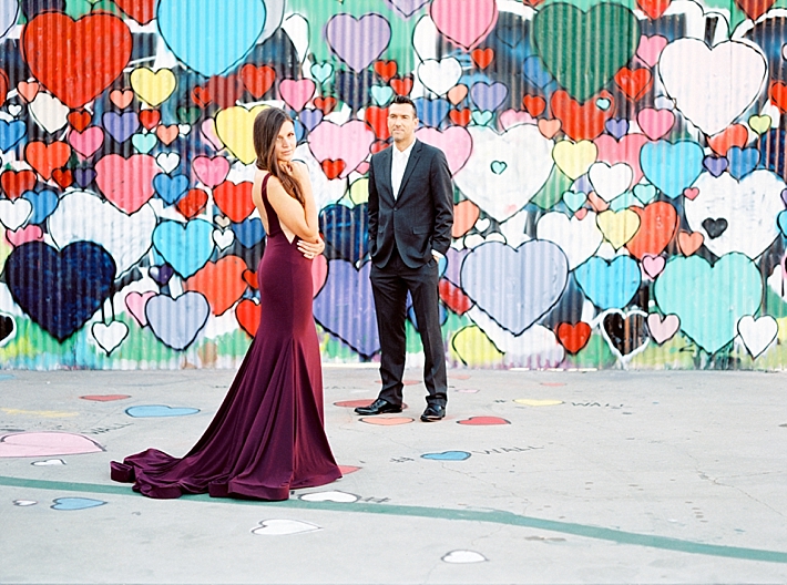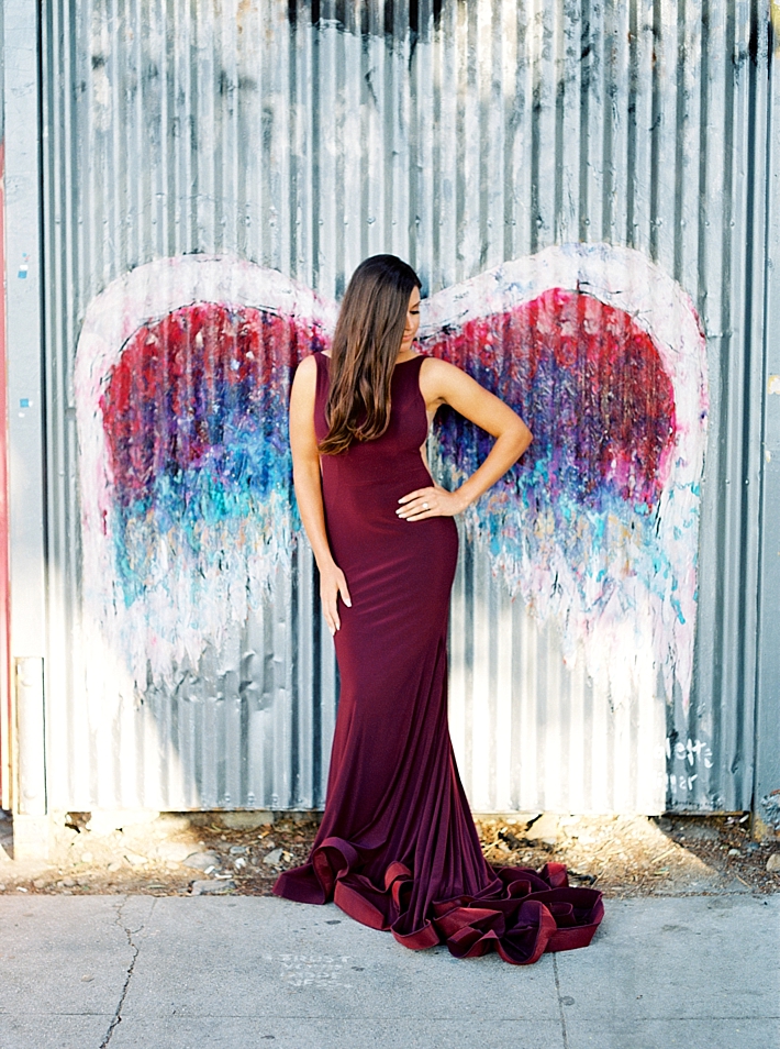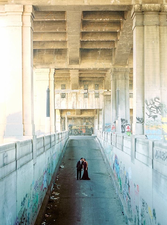 “Chante & Paul’s Love Story is so grand, so unbelievable and truly fairy-tale-like, that it cannot be told, it must be experienced in person! Their love story will end up taking us to Barcelona to capture their big day. We knew we could not top the grandiose setting of a historic town like Barcelona here, while State-side. So, we opted for a local, and expressive tone. Their appreciation for the Arts, the city of Los Angeles and Elegance are all beautifully juxtaposed together for their Engagement Session and it makes for eye-catching frames! Chante & Paul’s love for one another radiates, and their impeccable sense of style does not hurt at all. Chante looks like a breathe of fresh air in her Burgundy gown, walking through the gritty streets of Downtown Los Angeles’ Arts District. Paul, most definitely holding his own as her Gent.” –Dennis Roy Coronel