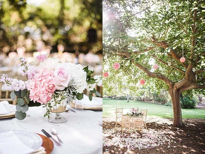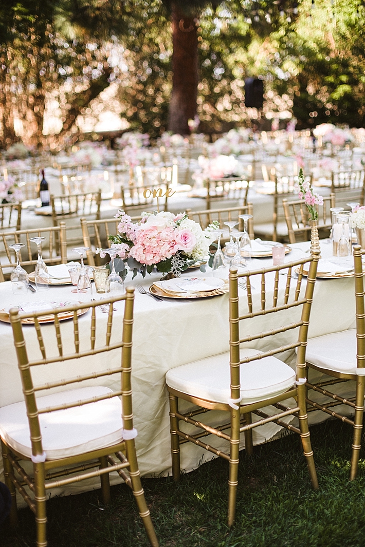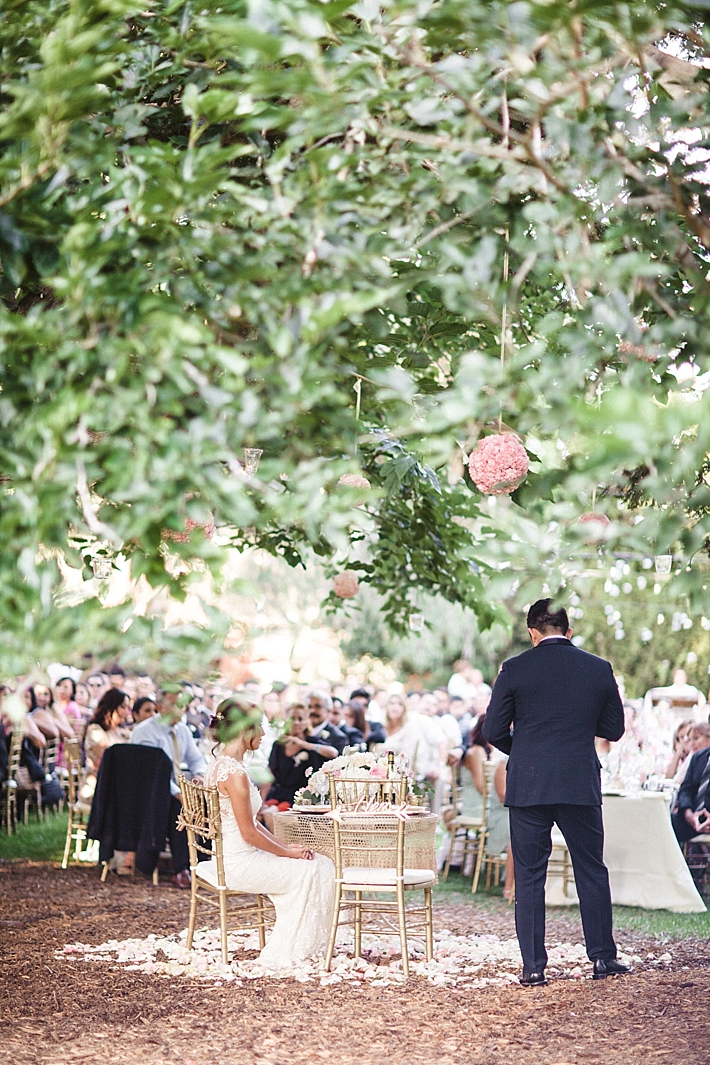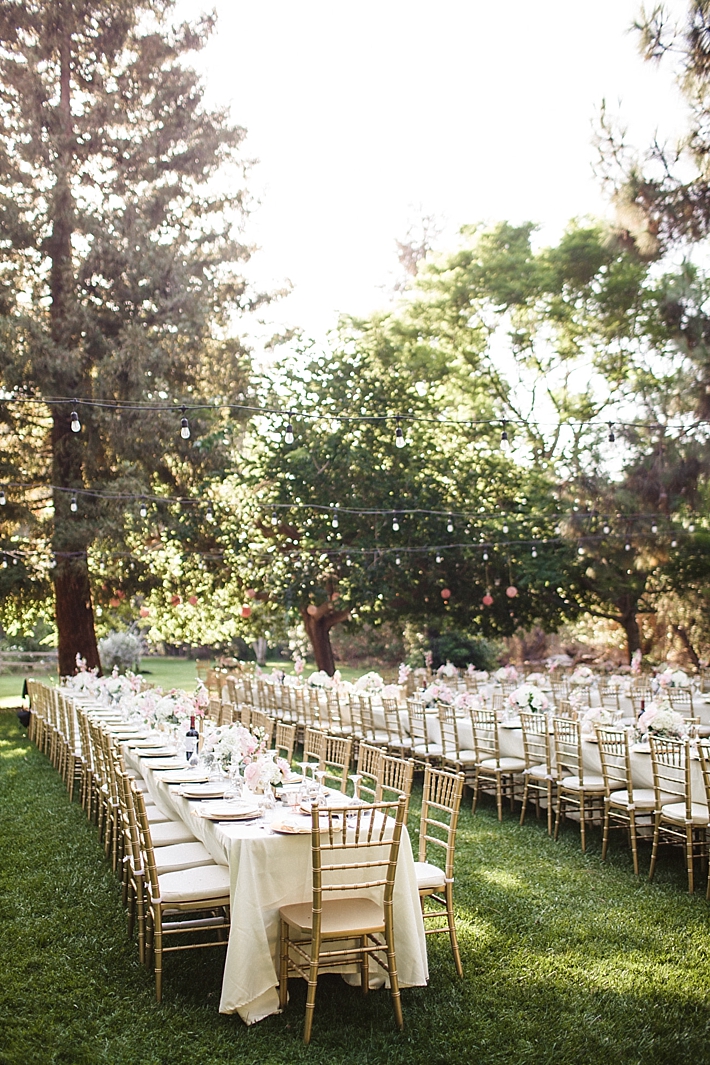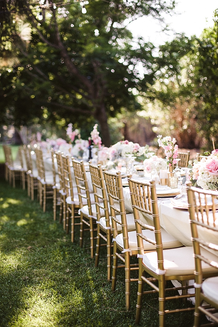 “Samantha and Ryan started dating in high school and their wedding was a huge celebration for both of their families as they had been together so long. Their traditional Catholic ceremony was contrasted with a lovely formal reception at Graf Barn in Oxnard. Samantha wanted to celebrate in the outdoors, but turned the typically rustic location more upscale of an upscale garden party for their wedding. Their blush and gold colors added elegance to the private venue while the impeccable catering and styling made their wedding a laid back formal affair! From the mish-mashed plates with the gold chargers to the gorgeous lounge seating, every detail was thought out to create this dynamic between the fancy and the fun.” -Katrina Louise Photography