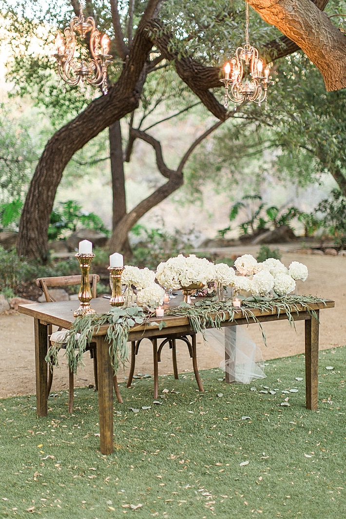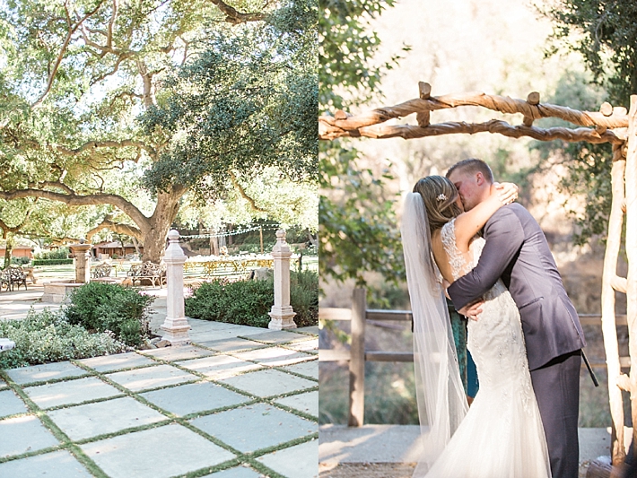 “As Mark and I began wedding planning (which happened pretty quickly, 6 months to be exact) we wanted something that was rustic, airy, and romantic. I knew I never wanted a basic hotel indoor wedding. So when I stumbled upon Oak Canyon Ranch at a small bridal event held at Dukes Malibu, I knew this could potentially be the venue! When we arrived at the Malibu venue, it was almost love at first sight. I fell in love with the venue and my mind started to go a million miles an hour, oh the things we could do with this beautiful venue, surrounded by trees and a beautiful creek that runs behind the venue. As we left the venue, Mark knew I was in love with it and we actually ended up canceling our appointment with another venue we were supposed to see after it!