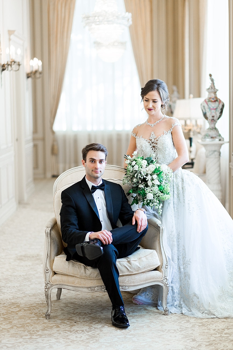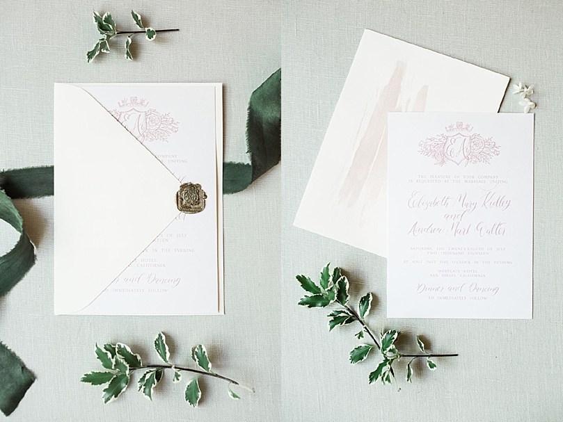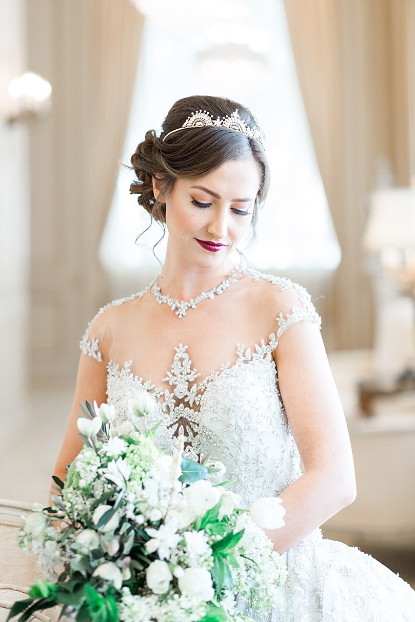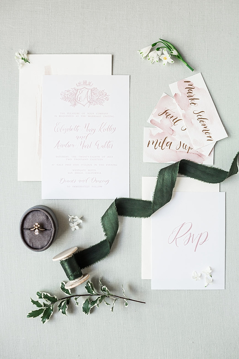 Photography: Cavin Elizabeth Photography | Venue: Westgate Hotel | Floral Design: Blooms by Breesa Lee | Styling: Luxe Events | Beauty: Unveiled Beauty | Wedding Gown: YSA Makino from Here Comes the Bride | Bridal Shoes: Bella Belle Shoes | Desserts: Sweet Cheeks Baking | Stationery: Four Things Paper | Ring: Trumpet and Horn | Tabletop Rentals: Hostess Haven | Models: Ivy Beech | Groom’s Attire: Friar Tux | Crown: Elle Bridal Boutique