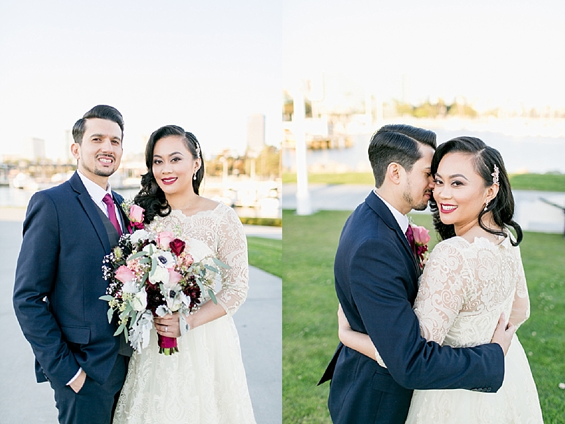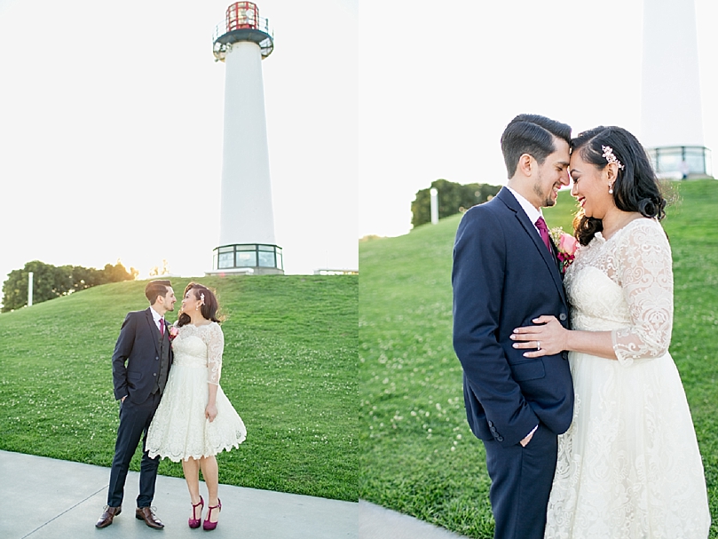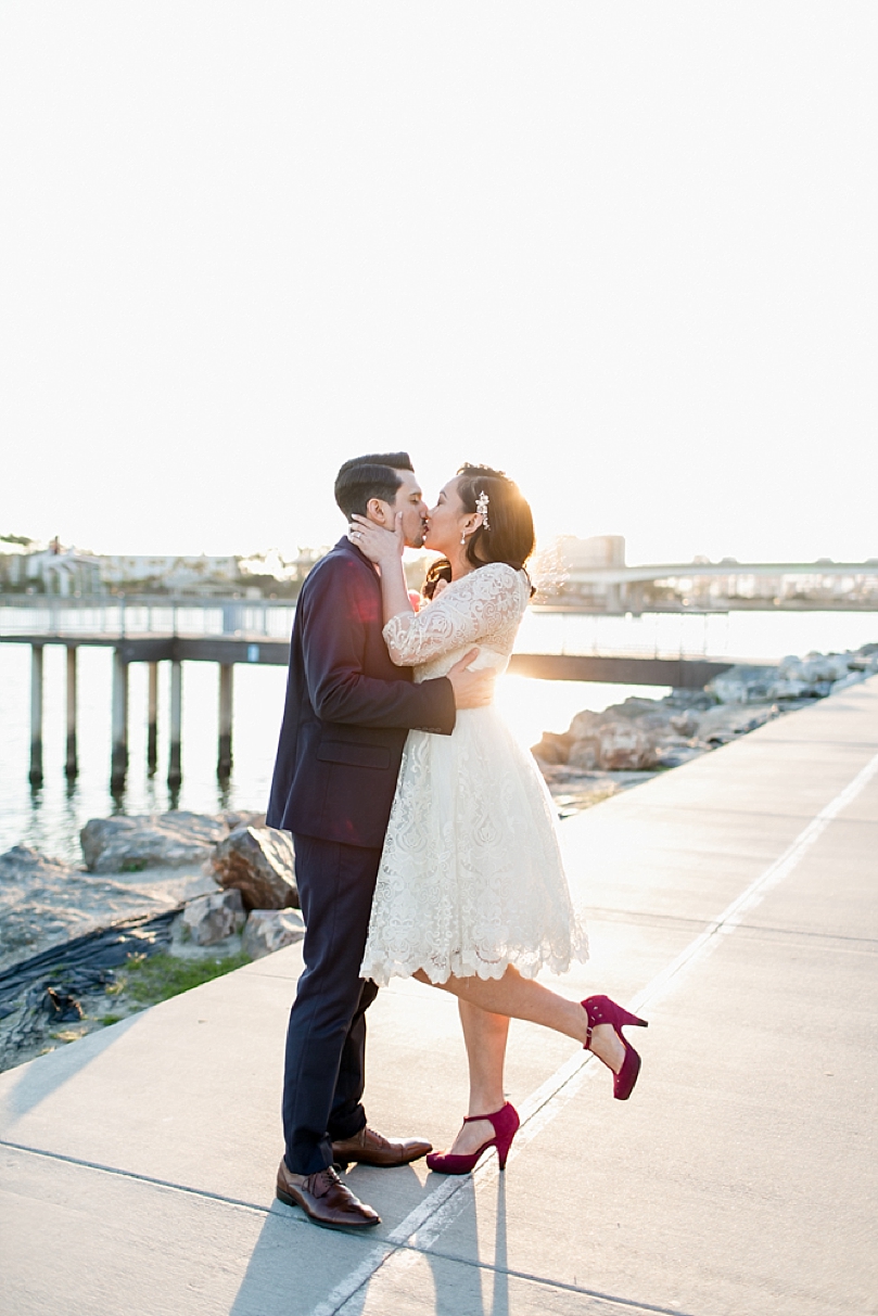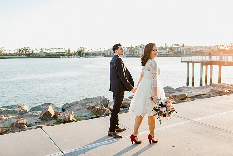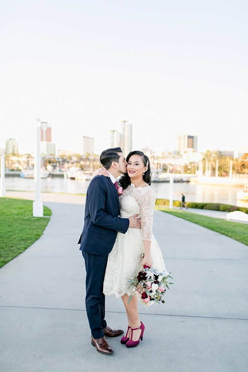 Only their immediate family was present, and they were married by a close friend of theirs in a spot they hold close to their hearts, Shoreline Village Park. The spot overlooked the ocean and the Queen Mary dazzled in the background. After the elopement ceremony, we took a few sunset photos and then the sweet couple left to celebrate with their family members and cut the cake at Naples Rib Company, one of their favorite restaurants.