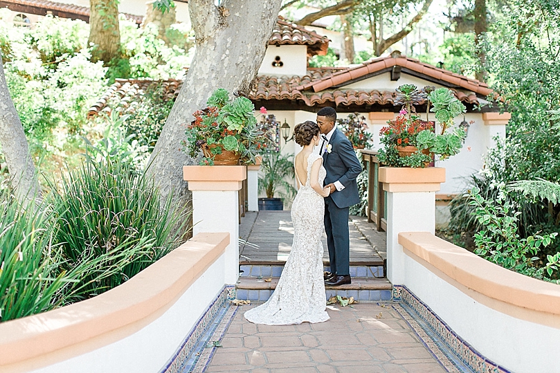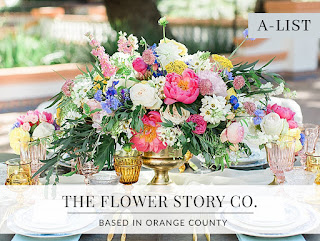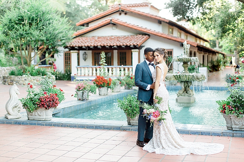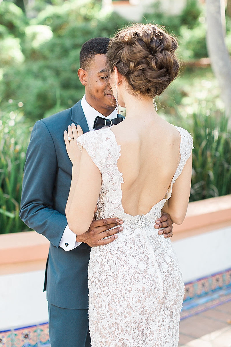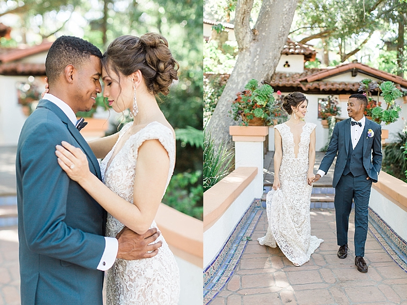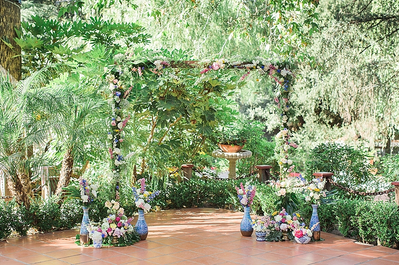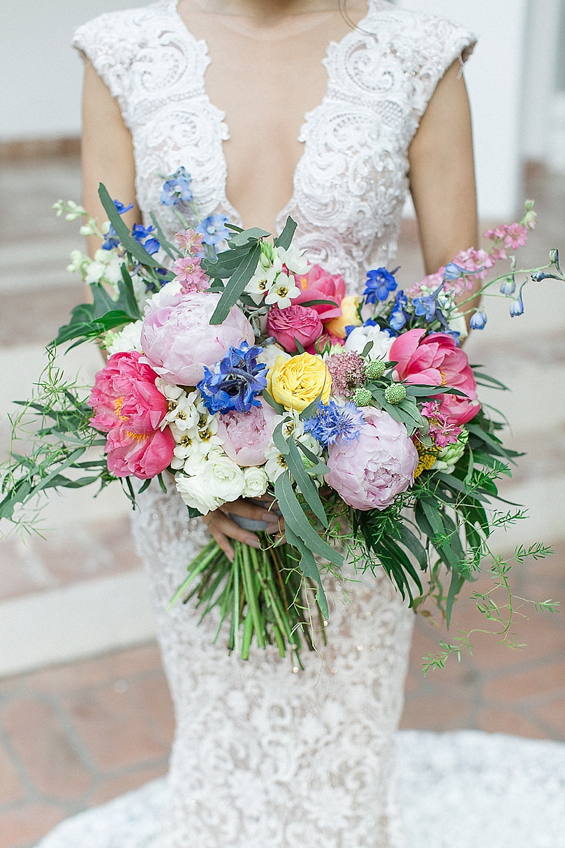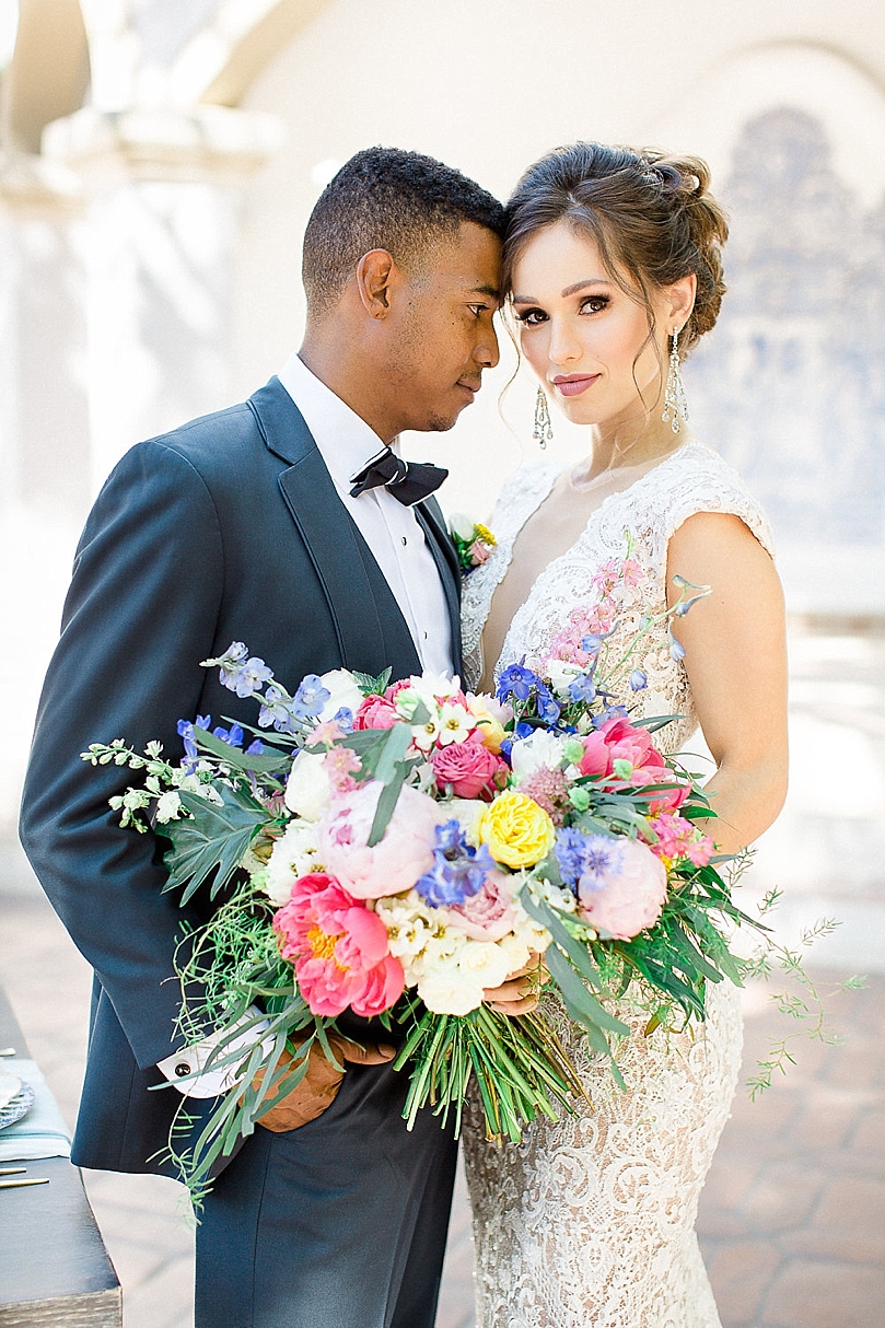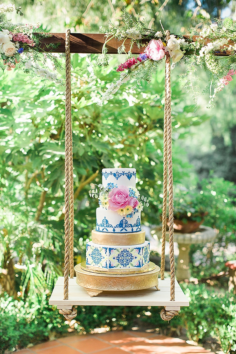 “For this shoot our venue was our muse. Nestled in the foothills of southern California Rancho Las Lomas is a beautiful Spanish style oasis. We drew inspiration from the architecture and tiles, which we loved incorporating into the vision. Not only did we highlight the tiles on property, we added our own tiles in the form of escort cards, with gold calligraphy by Kelly Patrice.