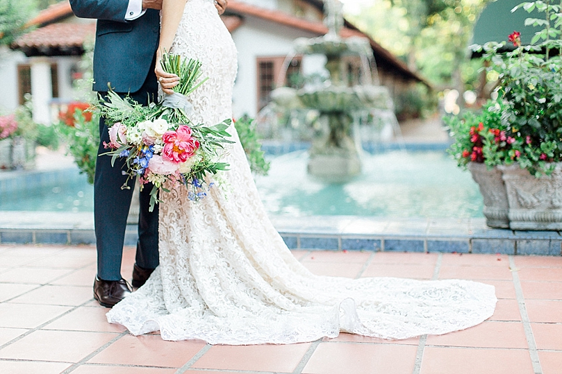 Photography: Rebecca Theresa Photography | Floral Design: The Flower Story Co. | Beauty: Beach Bridal Beauty | Venue: Rancho Las Lomas in Orange County | Planner: CMG Weddings & Events | Rentals (furniture): Oak Tree Wedding Rentals | Rentals (tableware): Cherished Rentals | Rentals (decor): My Lovely Events | Cake: Plumeria Cake Studio | Wedding Gown: Berta from Lovella Bridal | Menswear: Friar Tux | Invitations: Invitation Maven | Calligraphy: Kelly Patrice | Linen: La Tavola Fine Linen | Videographer: Kalet Cinema | Models: Rachel Ann & Tony Cook | Bridal Shoes: Badgley Mischka | Ring Box: The Mrs Box
