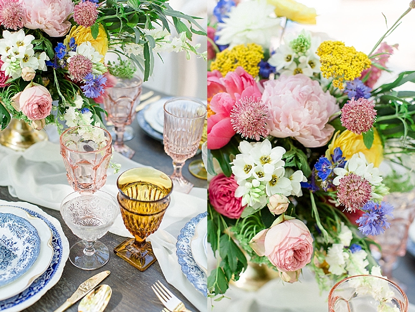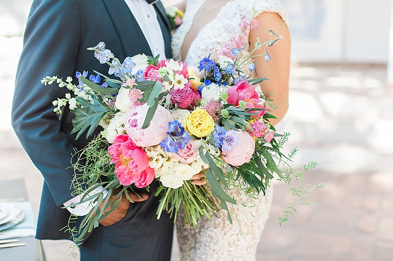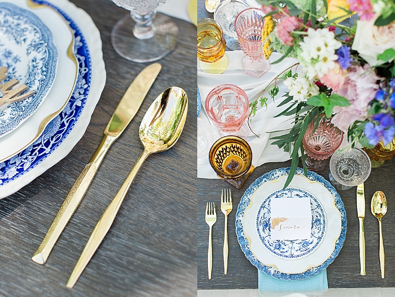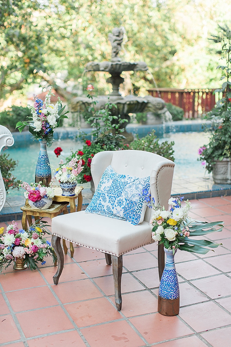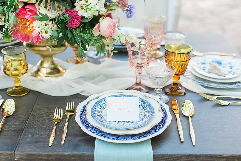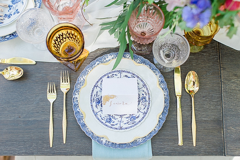 The blue and white Spanish design was an element that we weaved throughout to tie all of the shots together. The china for the tablescape was provided by Cherished Rentals and really brought the look all together.