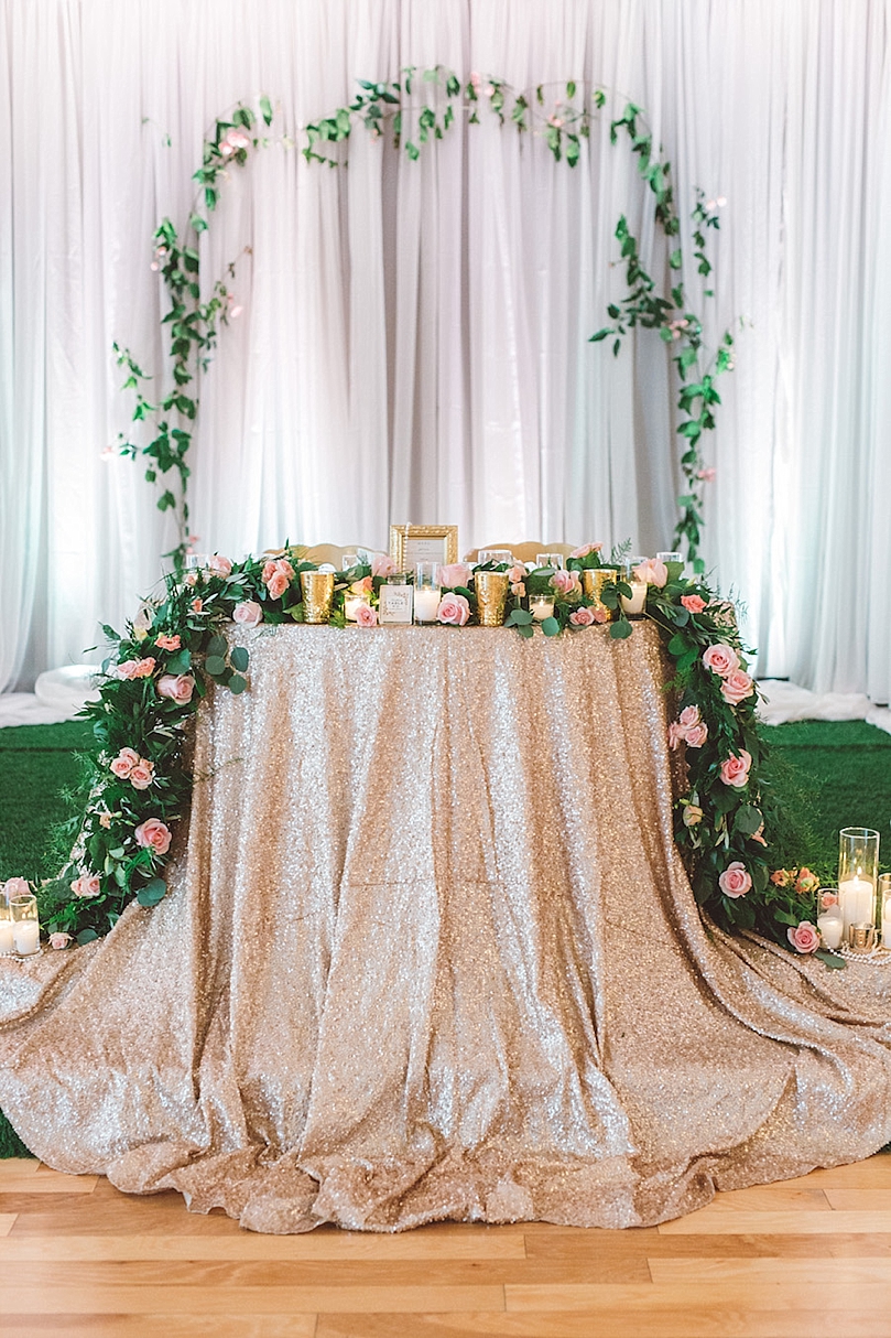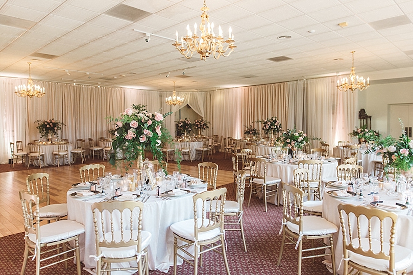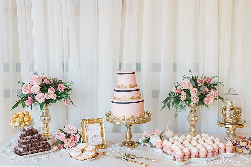 Rachel’s wedding reception decor reflected a little Marie Antoinette, a splash of Coco Chanel, and a hint of Beauty