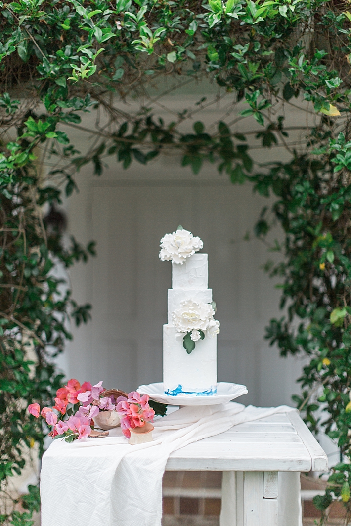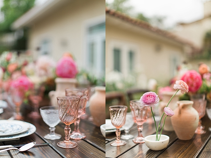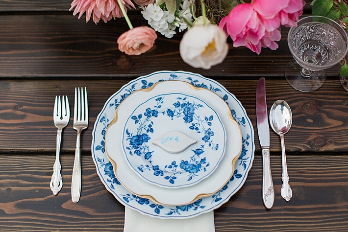 I knew that I wanted to photograph at The Inn at Rancho Santa Fe, so I immediately brought in the ever so talented Wendy Ramos of Just Wonderful Events to plan and style for us. When we walked through the grounds of this oasis that is tucked away in the rural hills of San Diego County right in the heart of a historic community, Wendy and I were immediately inspired by the charming architecture and romantic landscape. The refined elegance with hints of another era left Wendy feeling that the location would be perfect for a wedgwood theme. When we stumbled upon the giant blue ceramic pots at the edge of the property, we saw the potential to play up some touches of Santorini, Greece. That is when the two worlds collided and we decided to pull together a mix of both—the historic wedgwood blues with touches of Santorini for something we have never seen before.”