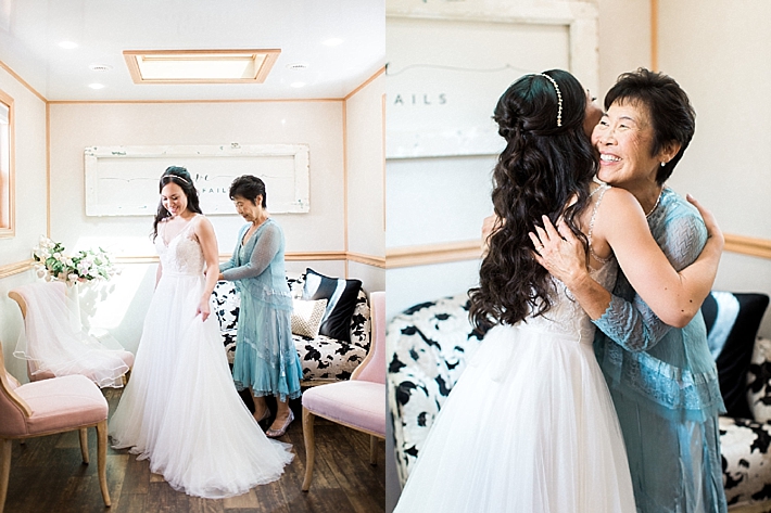 Our favorite part of the day was definitely the reception because the dance floor was completely packed the entire time! We told our DJ Jerry to keep a steady stream of Michael Jackson, Bruno Mars, Prince and more, along with Mexican songs we love like La Cadenita. We incorporated Martin’s Mexican culture in some really awesome ways, like having a mariachi band (that Martin’s cousin is in) play during our cocktail reception and the beginning of the reception and doing the traditional Mexican money dance. My godmother is a pastor, and she was our officiant, and my godfather (who is also a pastor) and Martin’s cousin each read some verses. We wanted to involve our friends and family as much as possible! We took flowers to our moms right before the ceremony to show our appreciation for their undying love. My godmother made the ceremony very special, but also added some fun humorous moments, which was a nice distraction from the extremely hot day!