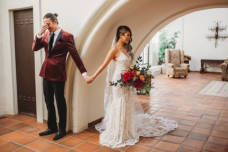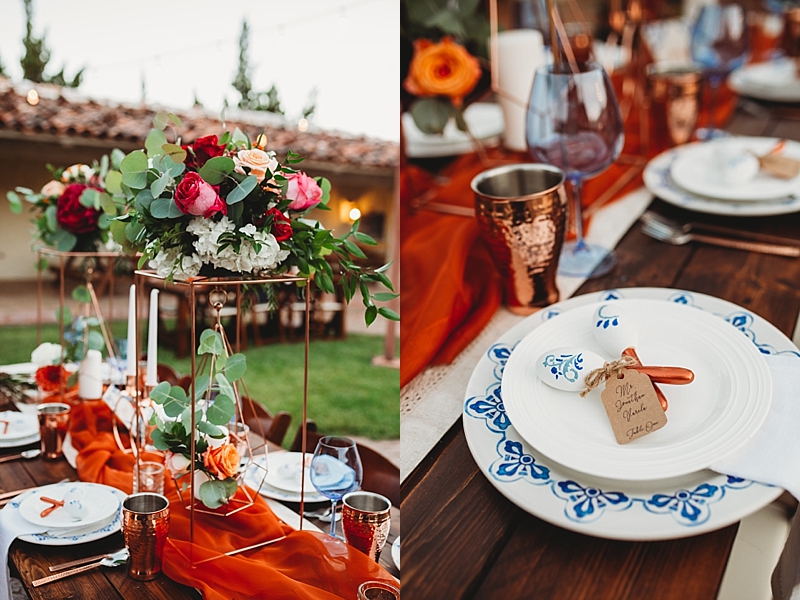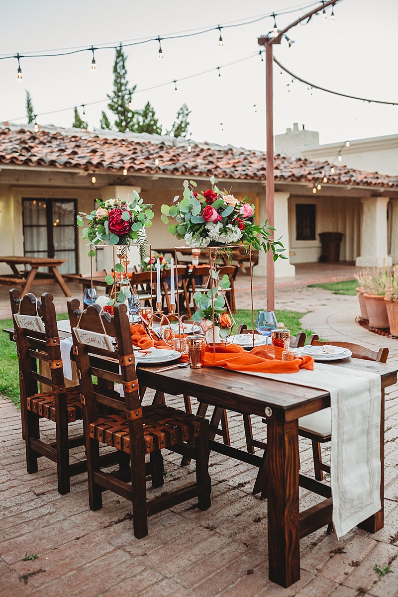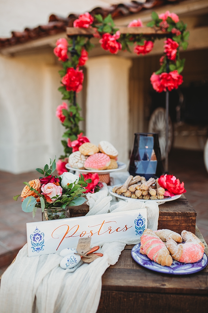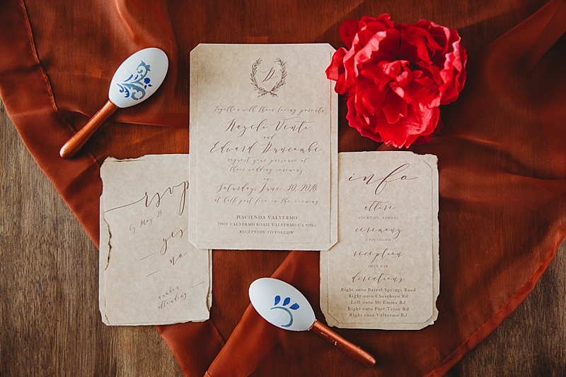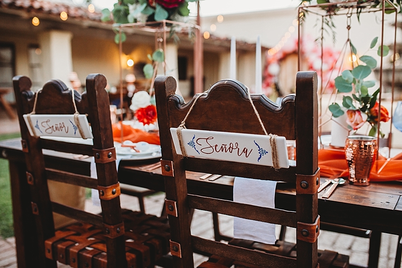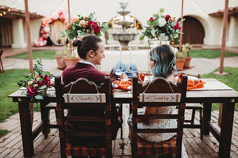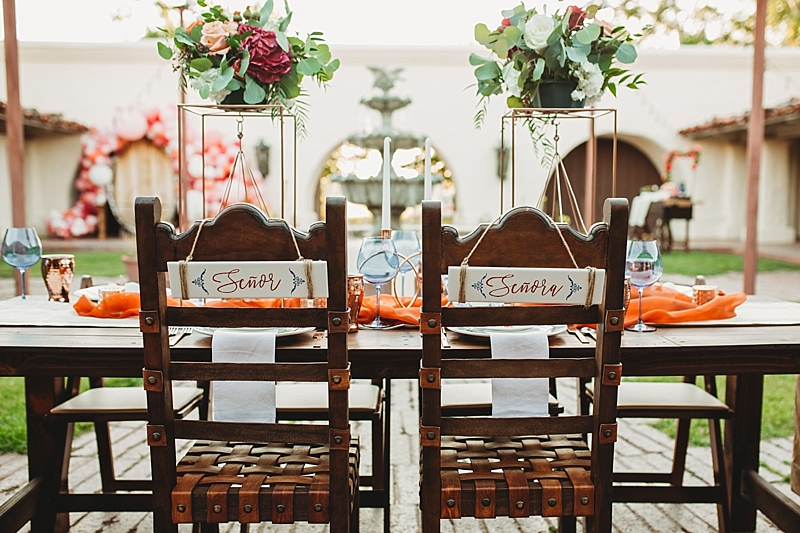 “Traditional Spanish style with touches of a modern style wedding at the brand new beautiful Spanish Ranch venue in Valyermo, Ca. We included many fun factors to this stylized shoot including hand-painted Mexican tile plates and tiles, maracas, mariachis, and ponies. Fun fact, the model bride and groom are actually engaged so their loving connection is felt through the lens and captured by our amazing photography team. To save money, many things were DIY, like the hand-painted Mexican tile plates and tiles. Plates and tiles were provided by a local pottery store and hand painted by a local professional calligrapher and chalk artist. We included so many special touches we hope you enjoy.”
