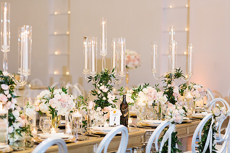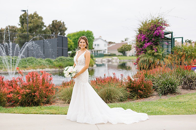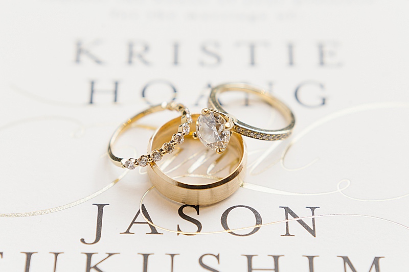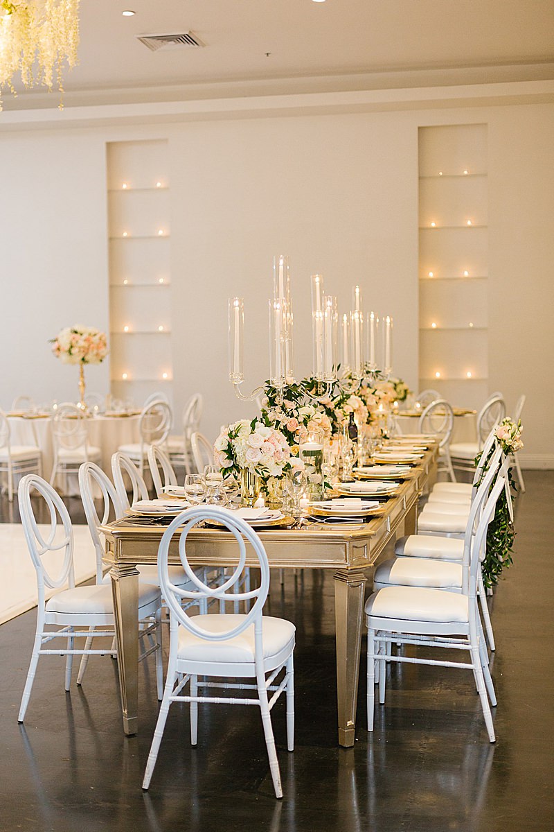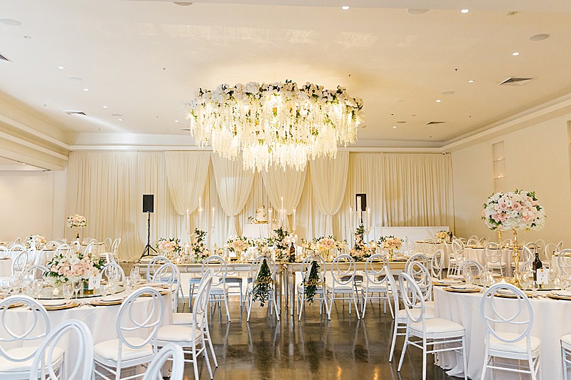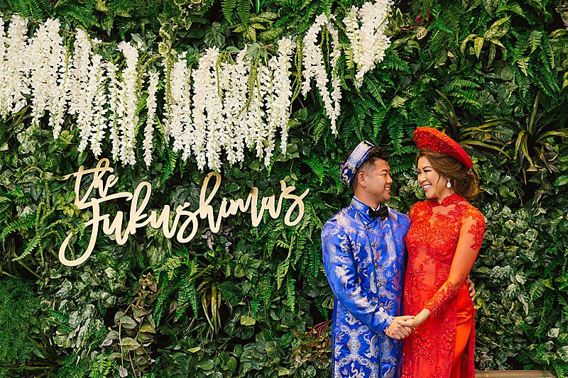 “We wanted to keep some Vietnamese traditions in our wedding. This helped us choose our wedding reception location.  The Venue offers enough space for our large families, had Vietnamese/Chinese traditional catering, and allowed bottles at the table.  My vision was mixed with classic/elegant vibes, white, blush, gold tones, French chateau, and romantic ambiance. We added seacliff to mix after we decided we didn’t want to do the ceremony at The Venue. Options were pretty limited but seacliff was able to accommodate the wedding size along with the outside country club vibe we were looking for.” -Bride & Groom