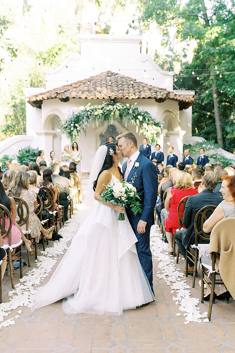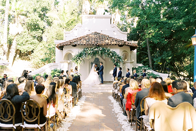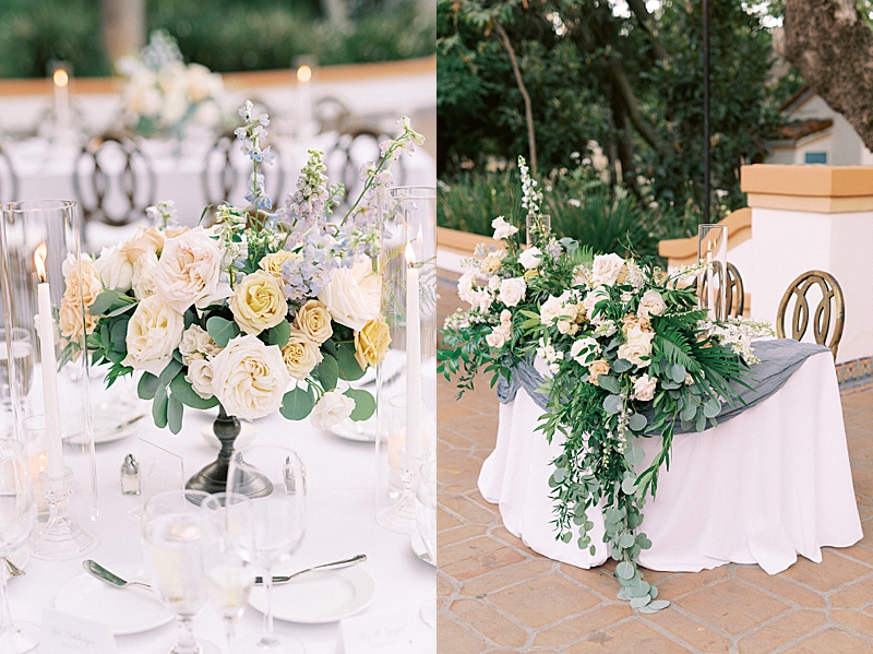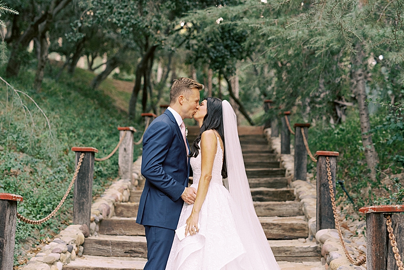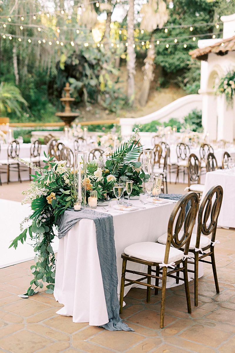 “We really wanted our wedding to feel magical and like most girls, I wanted to feel like a princess on my wedding day. Like something out of a Disney movie, minus any actual Disney references. My dress was designed by Hayley Paige and appropriately named the “Markle Gown.” When you’re looking for a princess ball gown and fall in love with one that’s named after a real-life princess, you know you found the one! As for the venue, Rancho Las Lomas already has a fairtytale-esque vibe to it so we didn’t have to do much to get that magical feel we were looking for! We both agreed on a summery, pastel color scheme that would complement the venue. We wanted our floral arch and centerpieces to be natural but unique. We had an amazing vendor team and they all did a wonderful job bringing our vision to life!” -Jaimee
