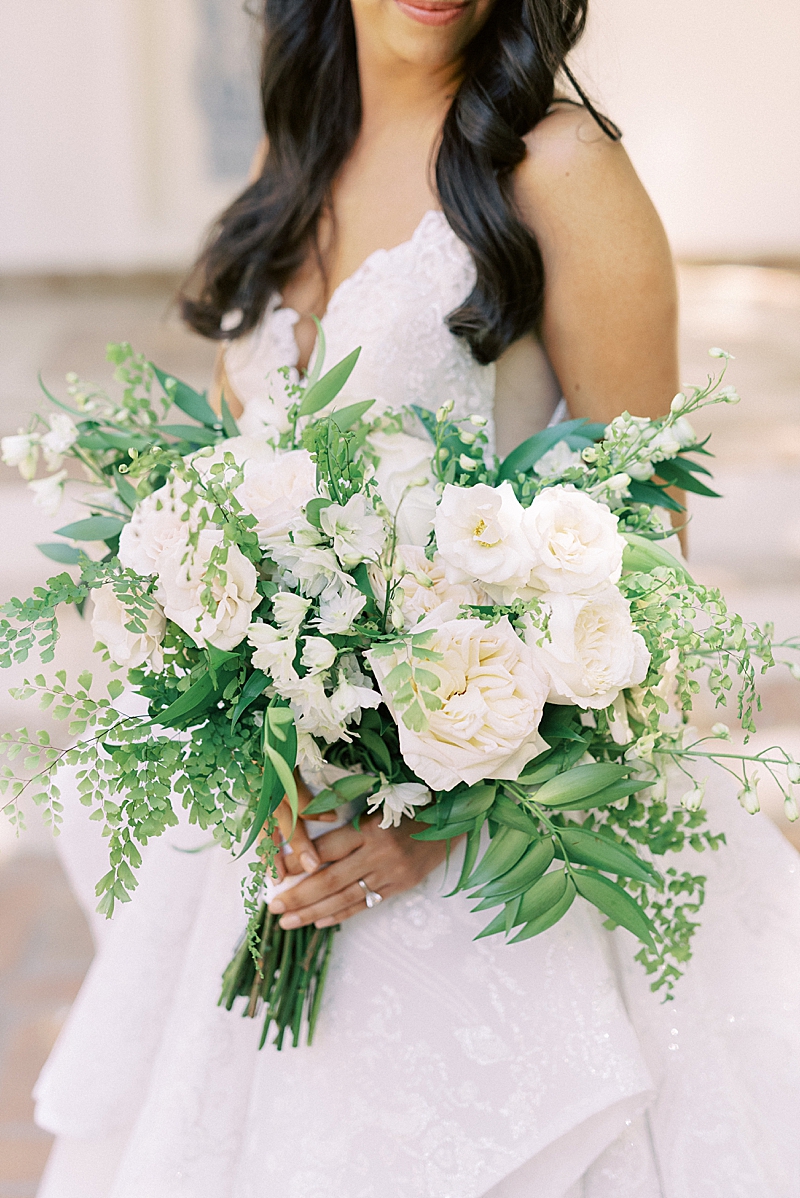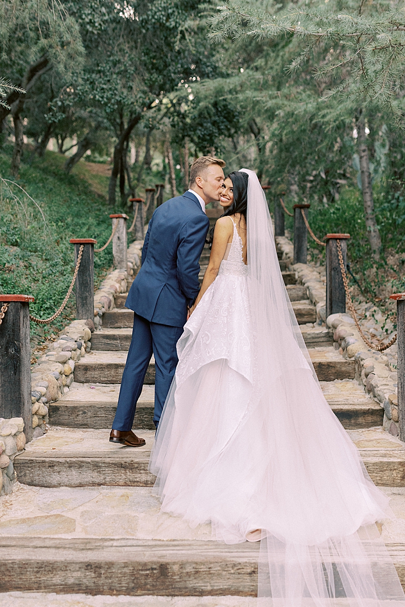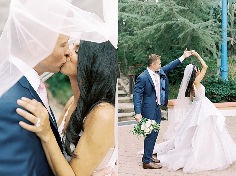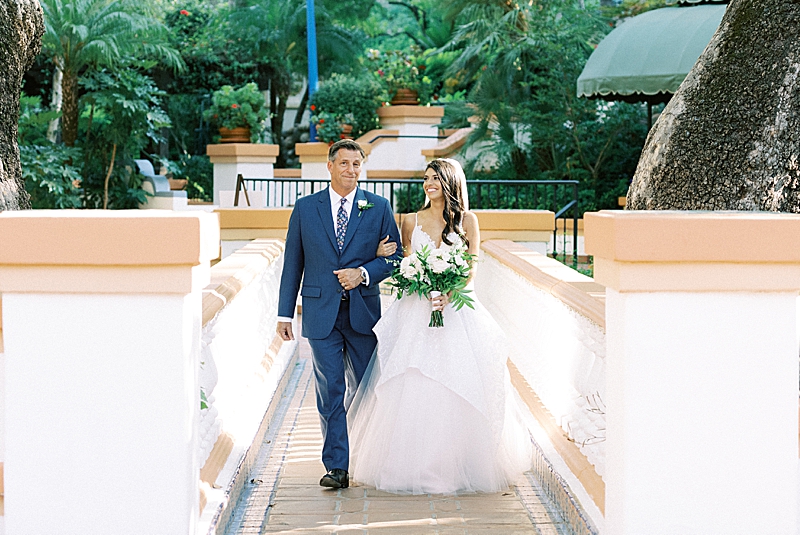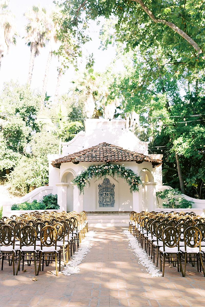 “We really wanted our wedding to feel magical and like most girls, I wanted to feel like a princess on my wedding day. Like something out of a Disney movie, minus any actual Disney references. My dress was designed by Hayley Paige and appropriately named the “Markle Gown.” When you’re looking for a princess ball gown and fall in love with one that’s named after a real-life princess, you know you found the one! As for the venue, Rancho Las Lomas already has a fairtytale-esque vibe to it so we didn’t have to do much to get that magical feel we were looking for! We both agreed on a summery, pastel color scheme that would complement the venue. We wanted our floral arch and centerpieces to be natural but unique. We had an amazing vendor team and they all did a wonderful job bringing our vision to life!” -Jaimee