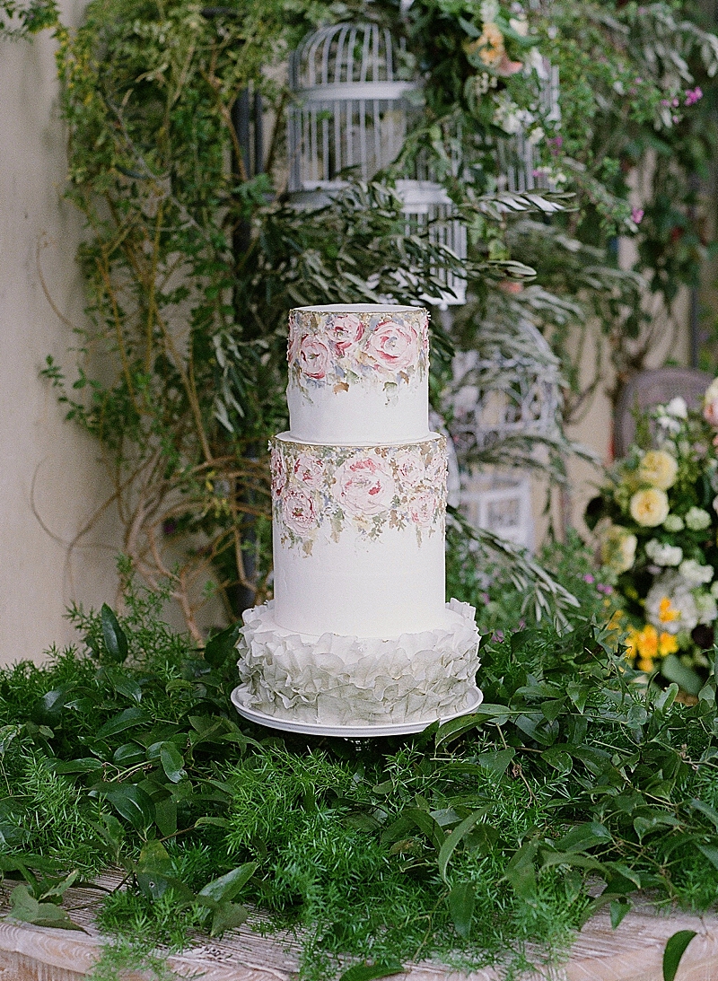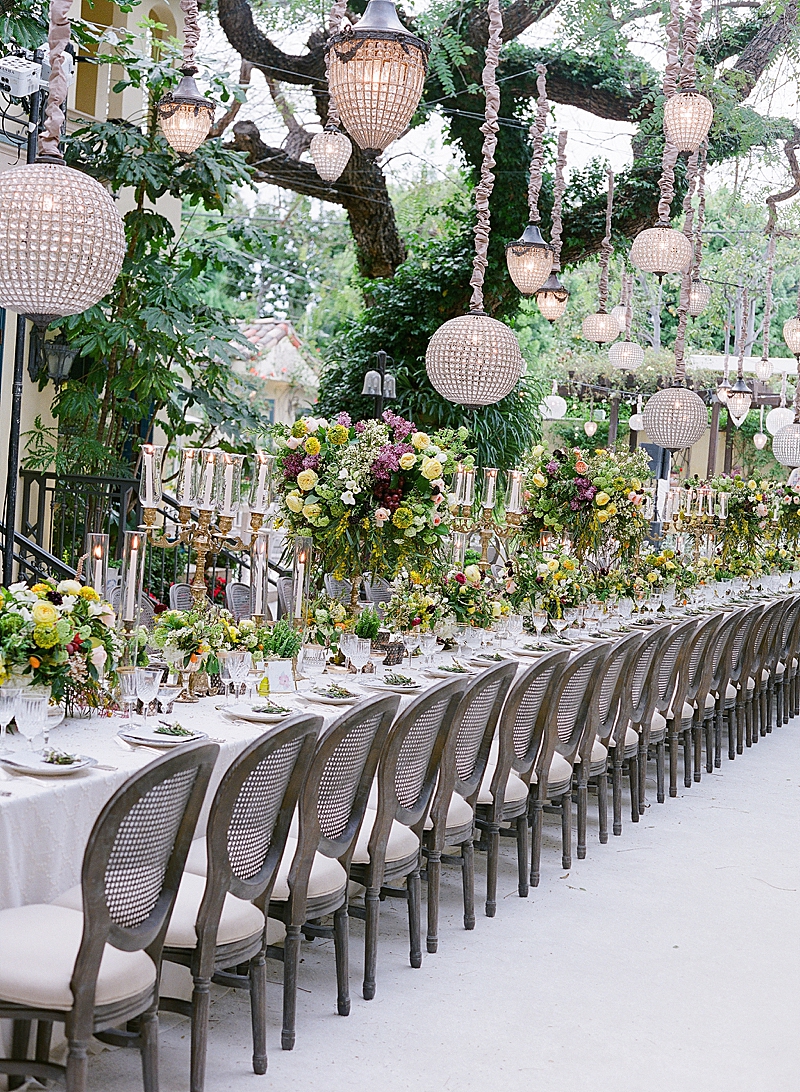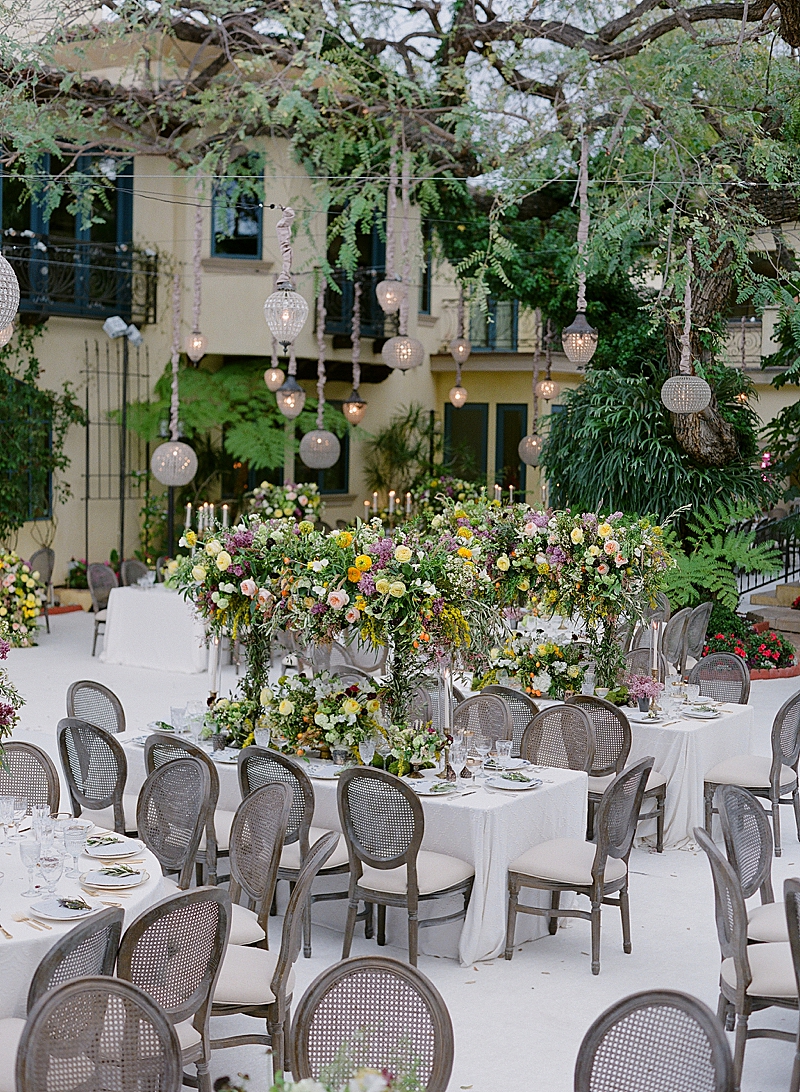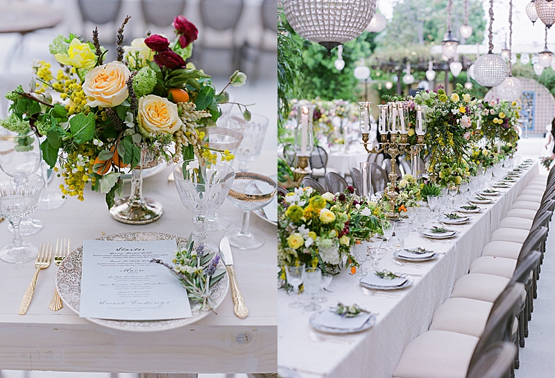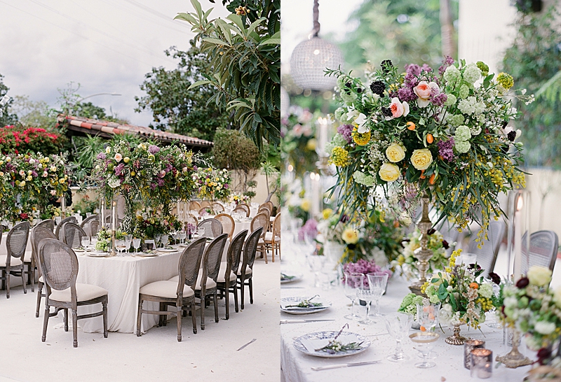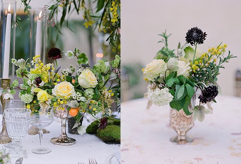 “This private residence was the perfect place to bring this mystical Italian inspired wedding to life. The architecture of the venue complimented the lush greenery with an assortment of colorful wildflowers. Lavished in delicious grapes and tangerines, you would think you were looking at a wedding day in the wine country of Tuscany. Beautiful white doves embellished the reception, resembling the sweethearts’ unity, purity, and love for one another.”