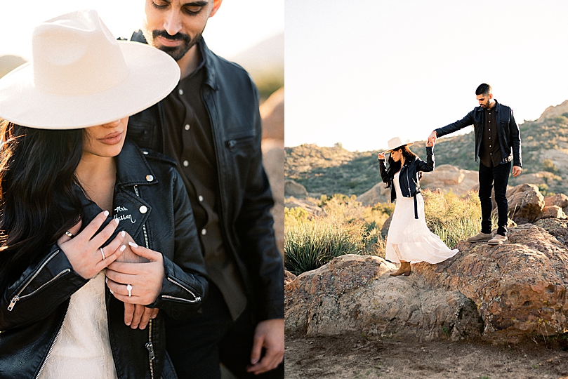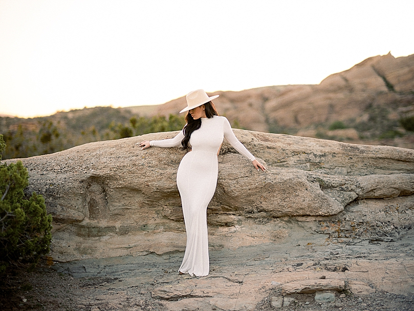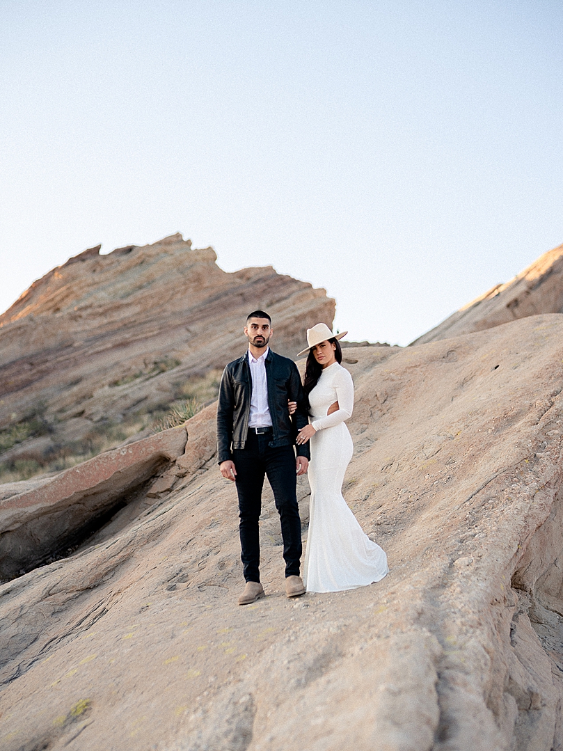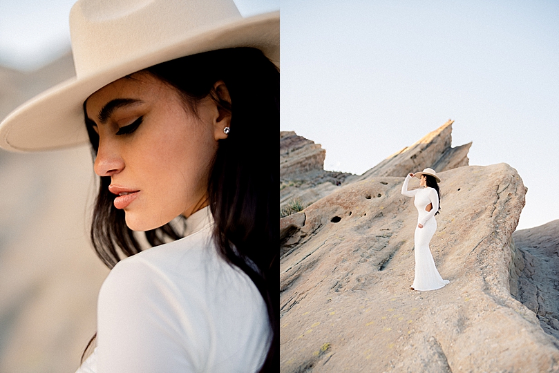 “Isabel & Joseph have been friends since high school and Joseph decided to wait until the day they graduated to confess his love for her, et voila! Years later they’re engaged and are having a destination wedding in Mexico later this year. This is the second time these two have hopped in front of my camera to celebrate their love, and they do not disappoint! After a frigid cold sunrise scouting trip, I quickly decided that a sunset shoot would be in order since dying of exposure was simply not an option. Seriously the best thing to happen to us. We couldn’t have asked for better weather and the setting sun along with these alien-like rock formations was the perfect backdrop for their shoot.”