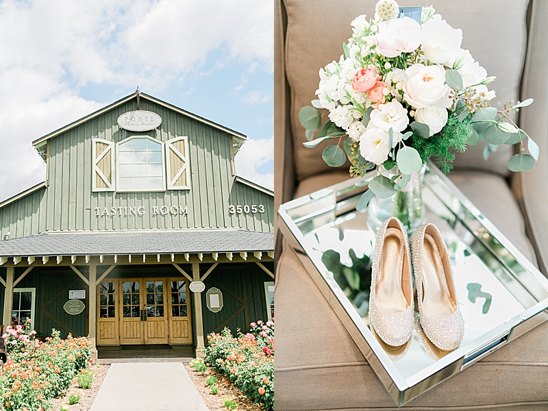 Photography: Whimsie Photo and Video | Ceremony Venue: Ponte Winery | Reception Venue: Ponte Vineyard Inn | DJ: Arrowhead DJ | Floral: Pam Null AIFD | Stationery: Minted | Wedding Cake: Martha Green’s | Rentals: Ponte Vineyard Inn | Hair: Leslie Sawyer – Nicole J Salon | Makeup: Katelyn Alford Makeup Artistry | Wedding Dress: Vera Wang | Groom’s Attire: Jos A Bank | Bride’s Shoes: DSW | Bridesmaid Dresses: David’s Bridal | Engagement Ring: Kesslers | Submitted via: Matchology