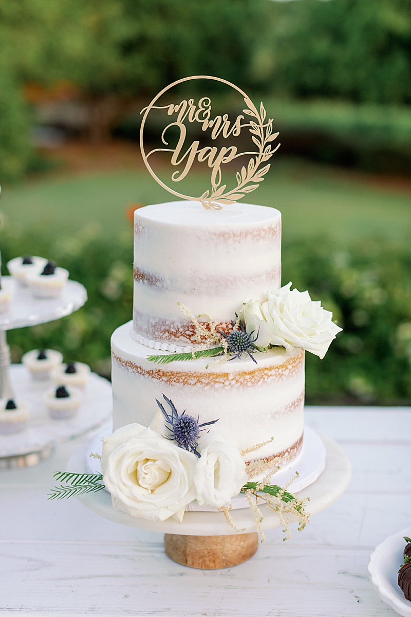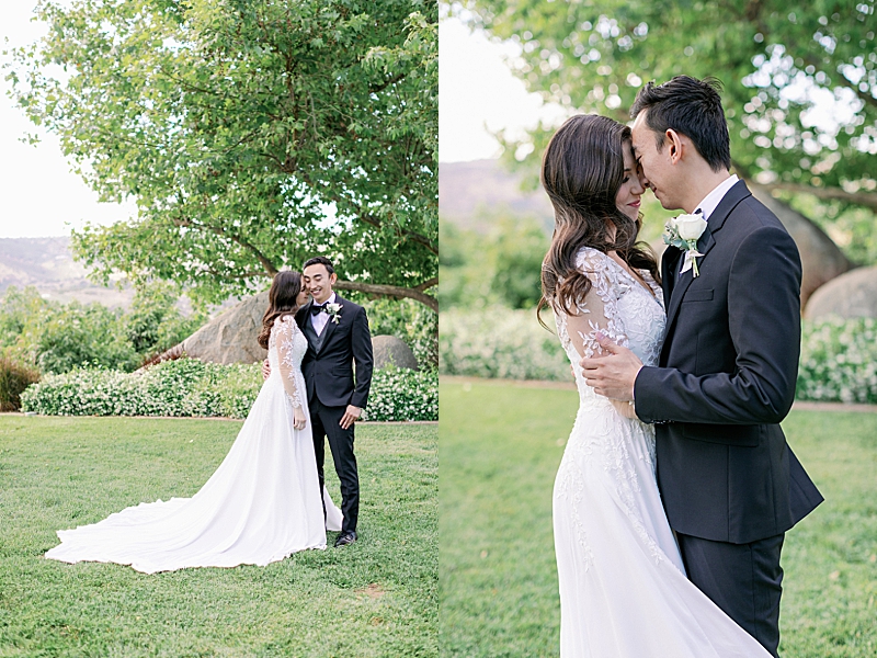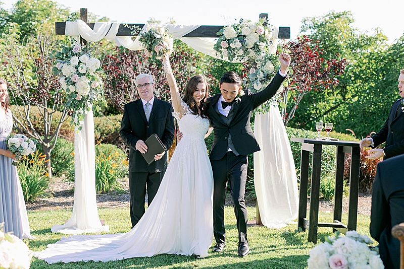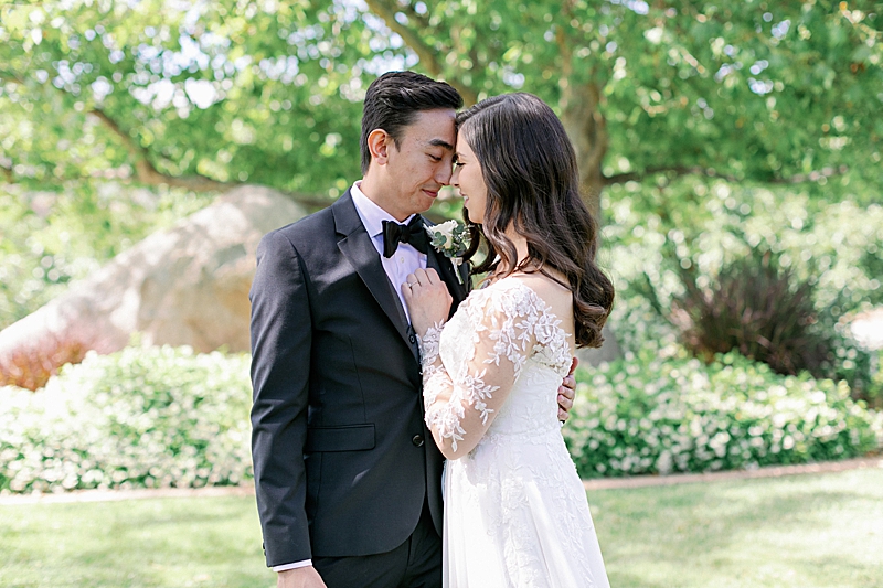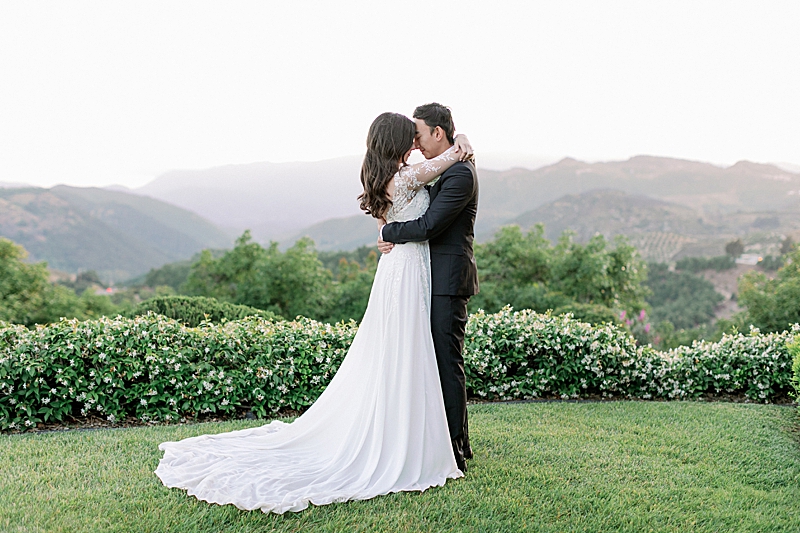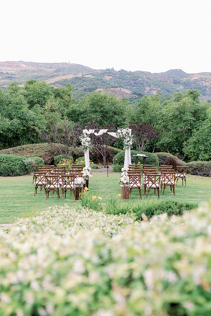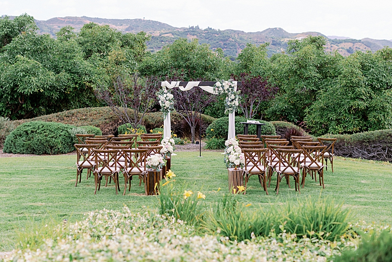 “Since COVID turned our previous wedding plans around, our goal was just to get married any chance we got. We were brainstorming ideas on how to arrange a small gathering while adhering to guidelines within Southern California. I finally had a date set in June at an Airbnb with just family and the wedding party. I still kept my vision to have a classy, garden estate wedding overlooking the Temecula Valley. I still kept the soft, neutral color palette of having greys, greens, and pinks. I also wanted the location to be secluded in order to have a private ceremony. Overall, my wedding was everything I dreamed of.”
