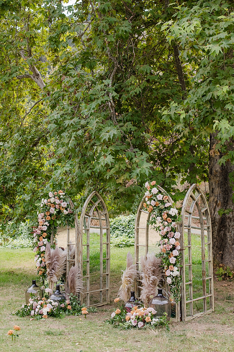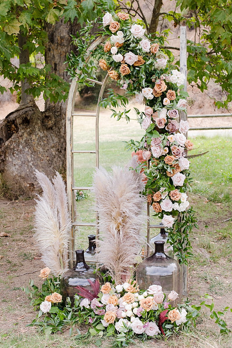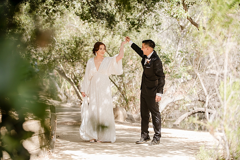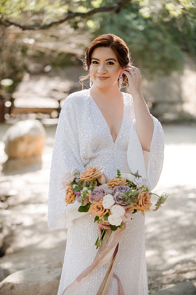 Concept, Design and Production: Yvonne Wolf Events | Location: Franklin Canyon Mountains, Recreation and Conservation Authority | Florals: Little Hill Floral Designs Specialty Rentals: Archive Rentals | Photography: Karina Pires Photography | Videography: Custom Made Productions | Petite Wedding Cake: Sweet E’s Bakeshop | Catering: Made by Meg Catering | Music: Mike Gerbrandt | Personalized Masks and Sanitizers: Studio 90212 | Officiant: Reverend Marlon Martinez